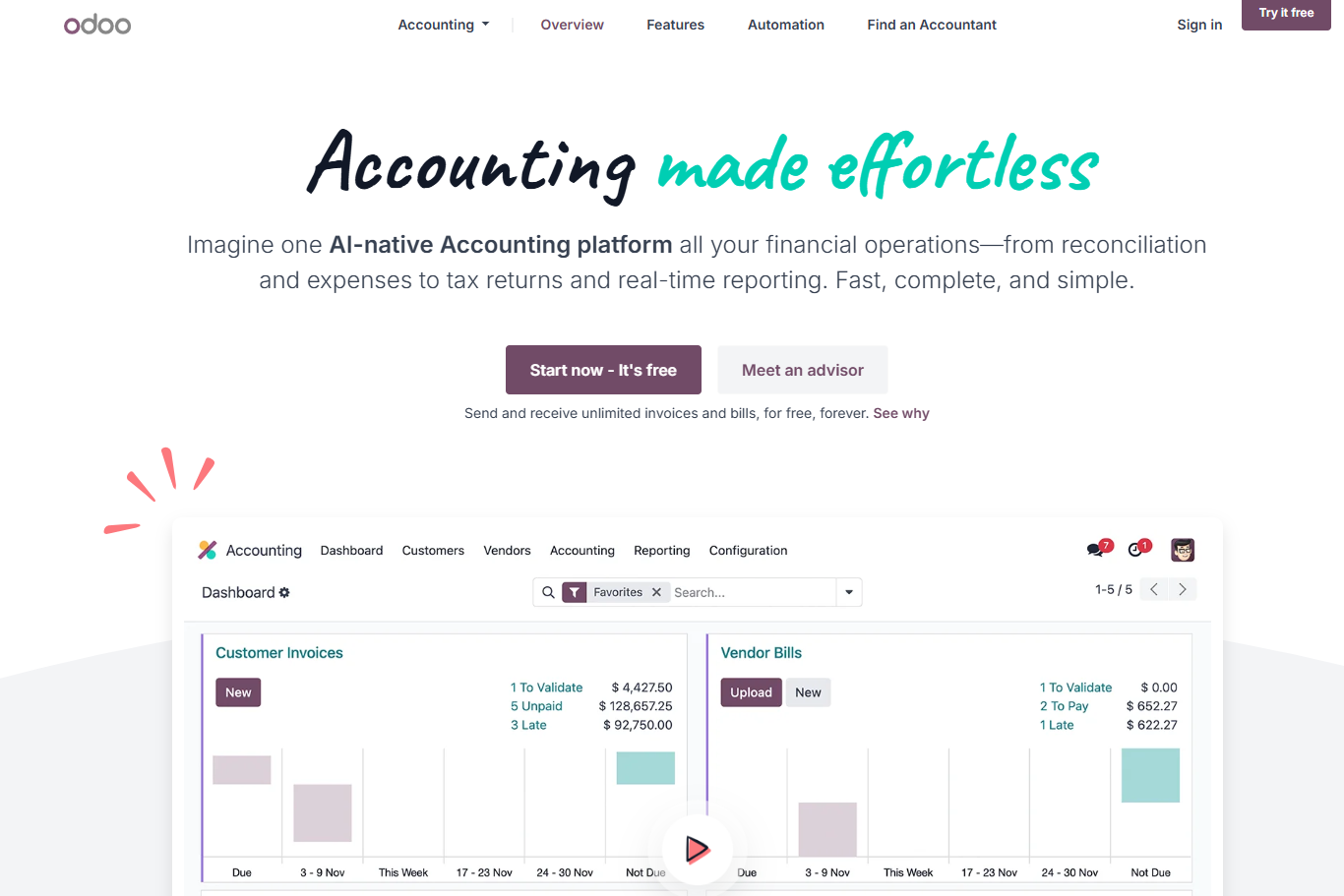 Odoo isn't strictly an accounting platform.