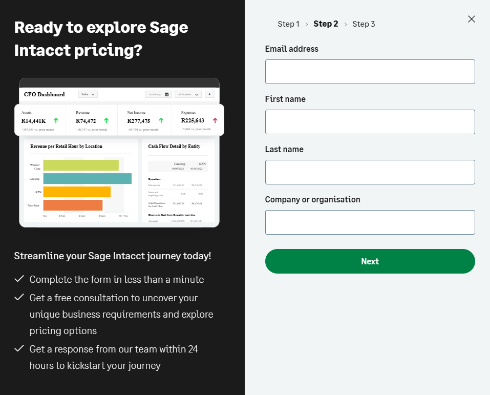 Sage 50’s pricing is not publicly available, so you’d have to contact them and request pricing.
