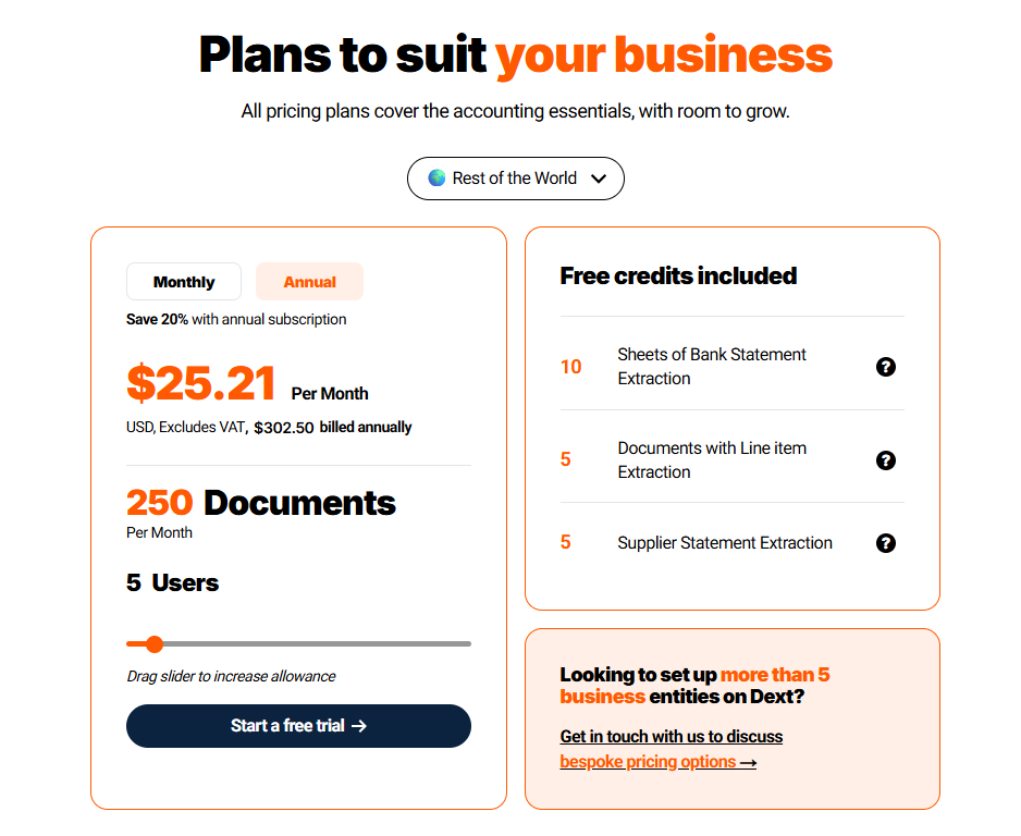Dext’s pricing is based on the number of documents per month that you’ll be handling with the platform and the number of users.