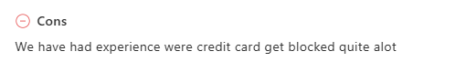 "We have had experience were credit card get blocked quite alot" - Capterra Review